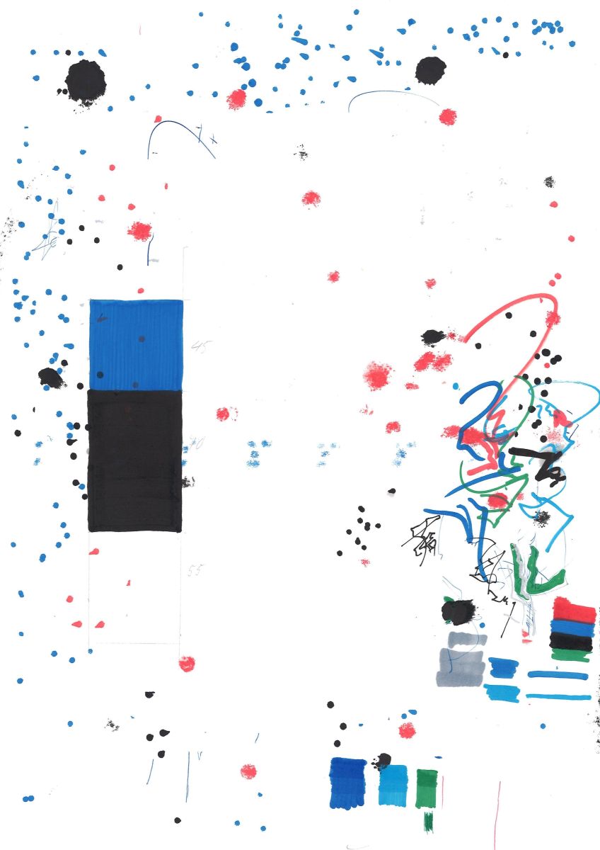 Kugelschreiber und Lackstift auf Papier