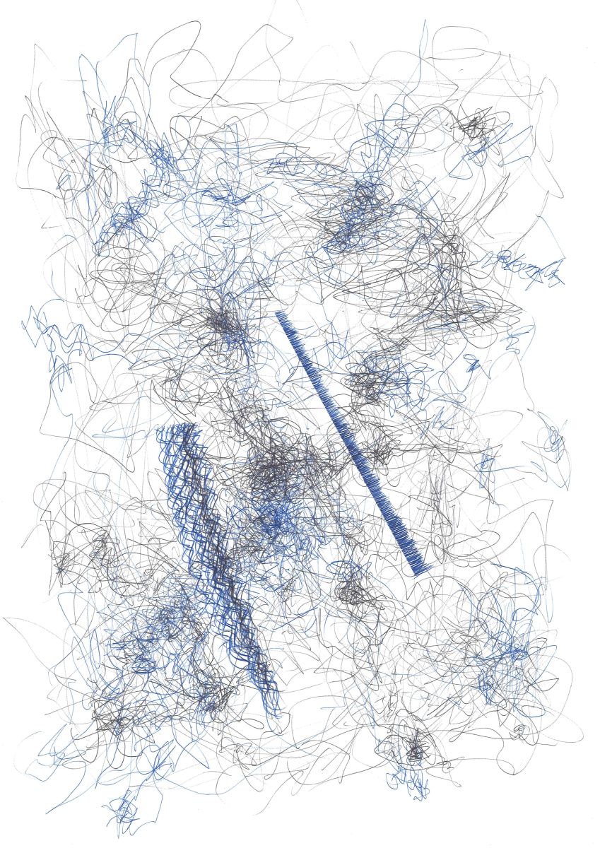 Kugelschreiber und Lackstift auf Papier
