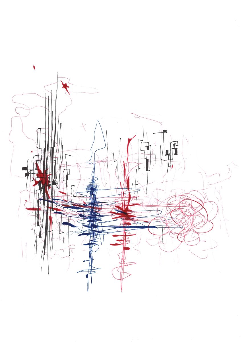 Kugelschreiber und Lackstift auf Papier